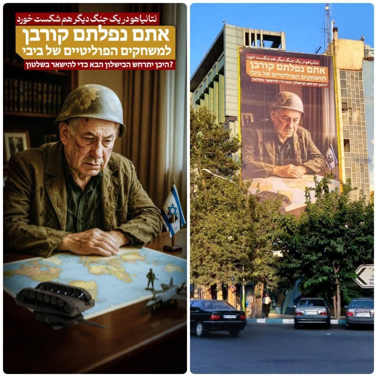 پس از جنایت سحرگاه  روز 23 خرداد ماه  رژیم صهیونیستی علیه کشورمان، دیوارنگاره میدان فلسطین تهران با پیامی به زبان عبری رونمایی شد: زیر آوارها دنبال پناهگاه باشید.