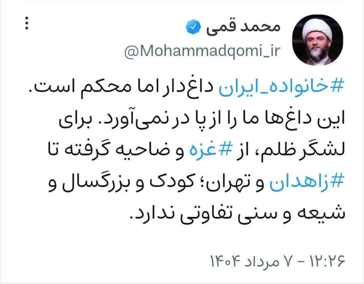 ۷ مرداد | حجت‌الاسلام قمی در صفحه شخصی خود نوشت؛