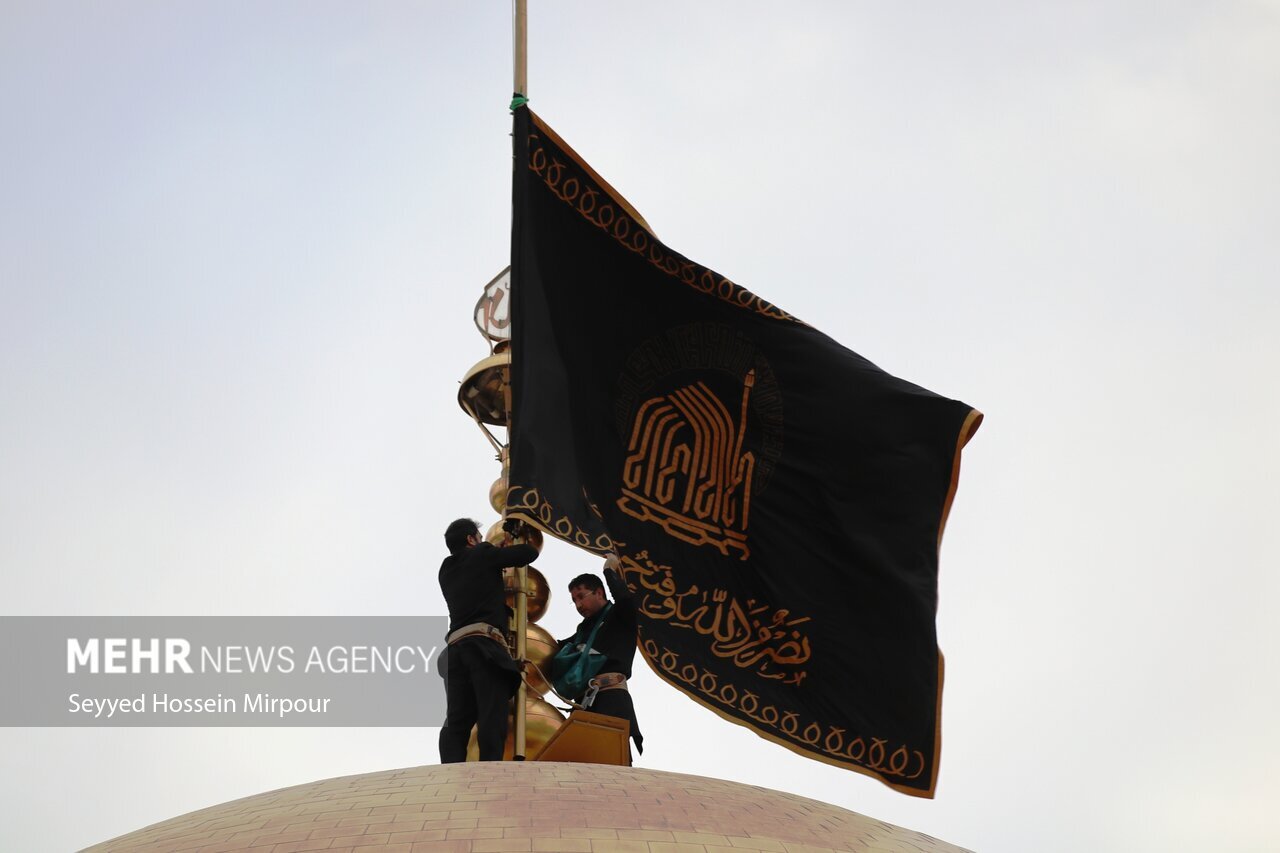 آئین سنتی اذن عزای حسینی در بست شیخ طبرسی حرم مطهر رضوی برگزار شد.