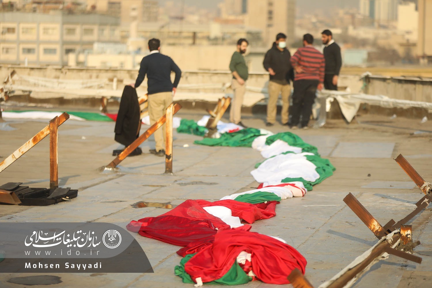 نصب ابر پرچم در میدان انقلاب