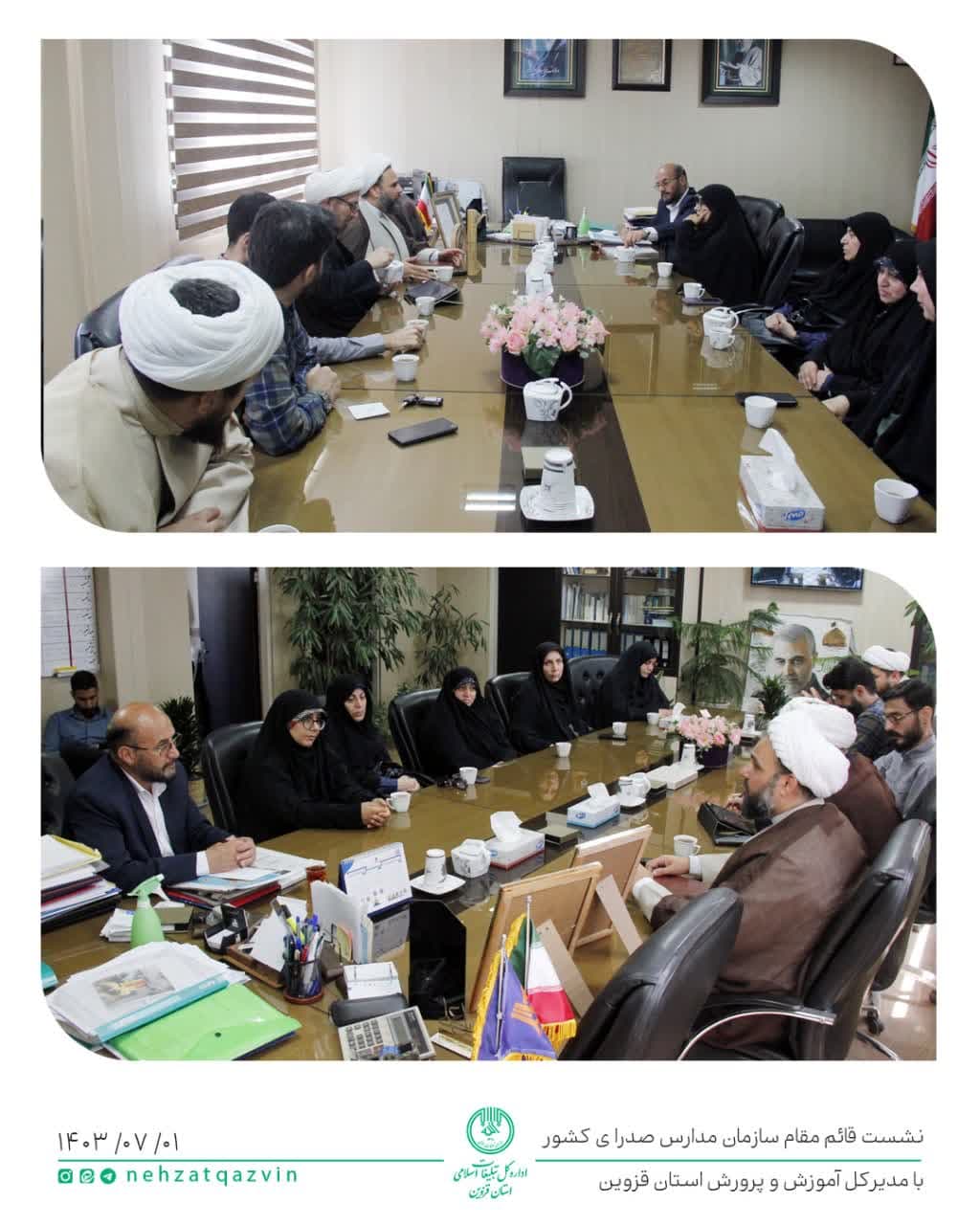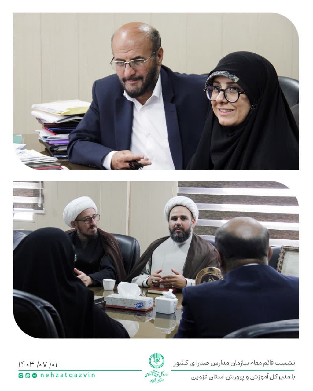 نشست حجتالاسلام مبینی، قائم مقام سازمان مدارس صدرا با آقای سیاهکالی مرادی مدیر کل محترم آموزش و پروش استان قزوین