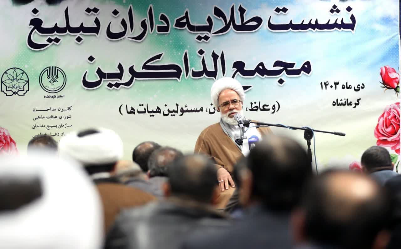 نشست «طلایهداران تبلیغ _ مجمع الذاکرین» با حضور وعاظ، مداحان و مسئولین هیئتهای مذهبی کرمانشاه به همت اداره کل تبلیغات اسلامی استان برگزار شد. در این مراسم بر اهمیت جهاد تبیین و بصیرت افزایی در هیئتهای مذهبی و همچنین ارائه اشعاری در مدح حضرت زهرا (س) تاکید شد.