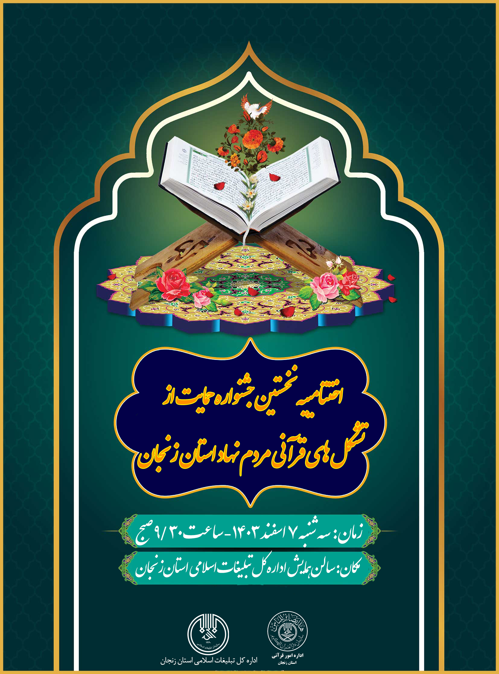 رئیس اداره امور قرآنی اداره کل تبلیغات اسلامی استان زنجان از برگزاری اختتامیه نخستین جشنواره حمایت از تشکلهای قرآنی مردمنهاد "به همراه تجلیل از برگزیدگان جشنواره" در استان زنجان خبر داد .